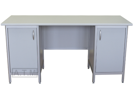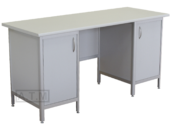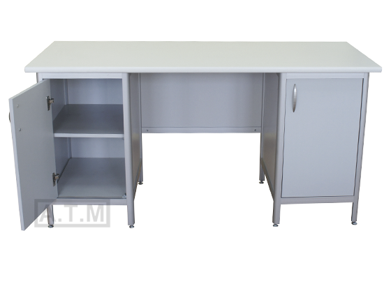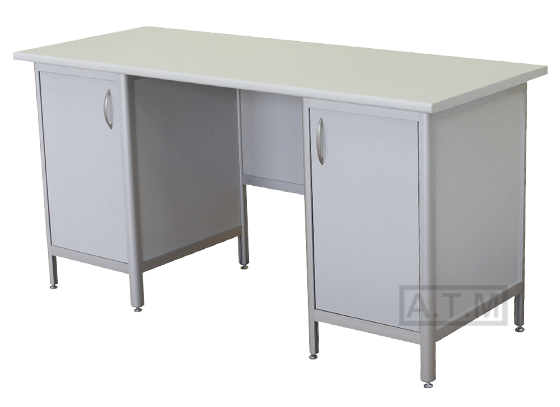 Стол снабжен двумя тумбами со створками (за створками полки)