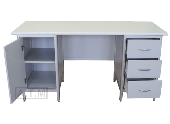 Вторая тумба снабжена 3 ящиками на роликовых направляющих;