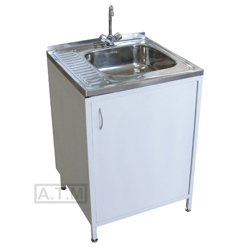 Мойка снабжена одной створкой, смесителем с подводом для горячей и холодной воды и сифоном.