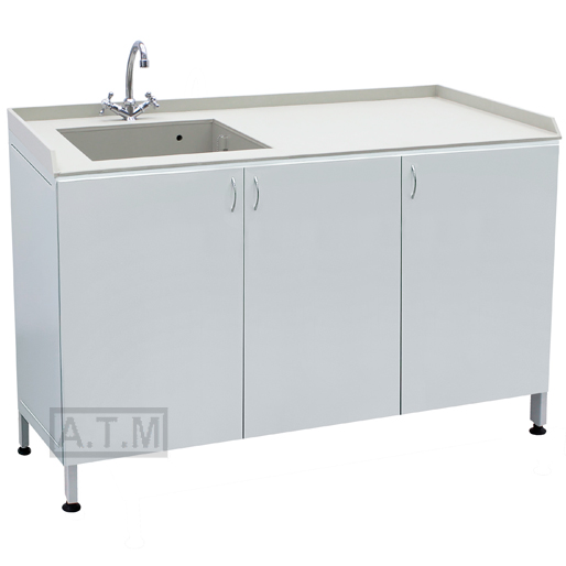 Столешница толщиной 10 мм выполнена из полипропилена серого цвета, по трем сторонам антипроливные бортики;