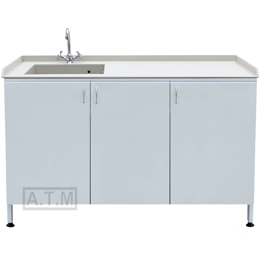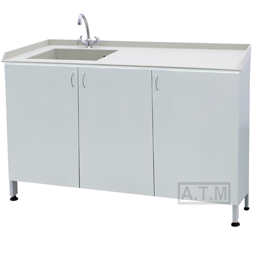 Столешница толщиной 10 мм выполнена из полипропилена серого цвета, по трем сторонам антипроливные полипропиленовые борты серого цвета;