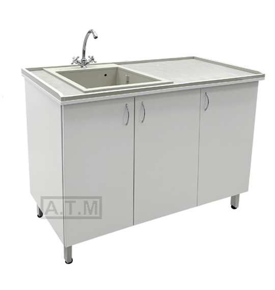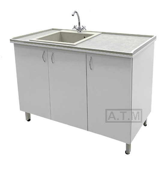 По четырем сторонам столешницы антипроливные полипропиленовые борты серого цвета;
