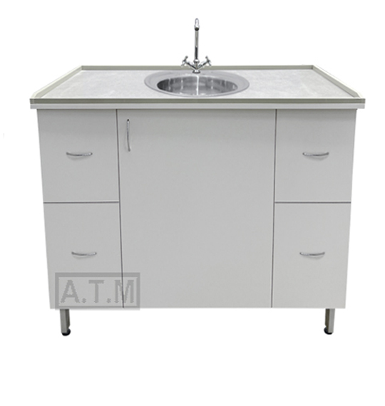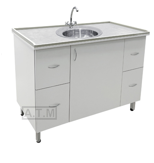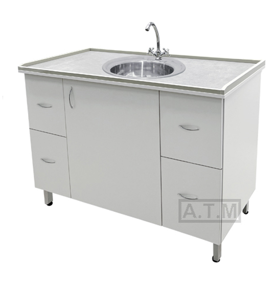 По четырем сторонам столешницы антипроливные полипропиленовые борты серого цвета;