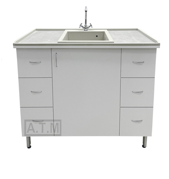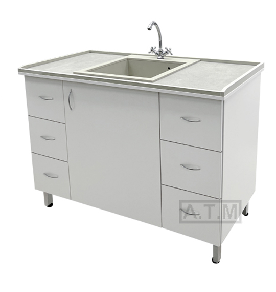 По четырем сторонам столешницы антипроливные полипропиленовые бортики серого цвета;