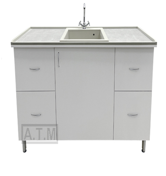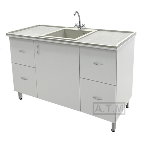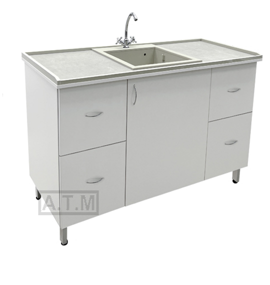 По четырем сторонам столешницы антипроливные полипропиленовые борты серого цвета;