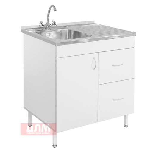 Мойка снабжена створкой, двумя ящиками, мойкой с крылом из нержавеющей стали, а также краном и сифоном.
