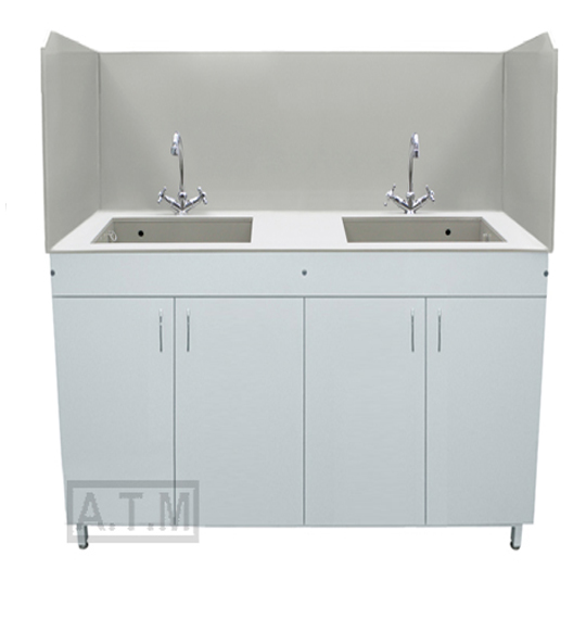 Столешница толщиной 10 мм выполнена из полипропилена серого цвета, по трем сторонам антипроливные полипропиленовые борты серого цвета;