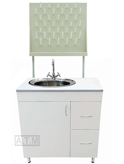 Мойка снабжена створкой, 2-мя ящиками на роликовых направляющих, мойкой с крылом, сушильным стеллажом из полипропилена серого цвета, смесителем с подводом для горячей и холодной воды и сифоном.