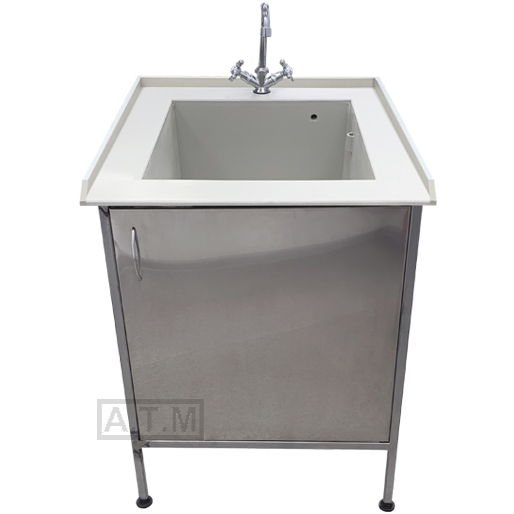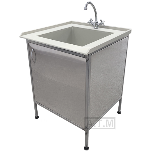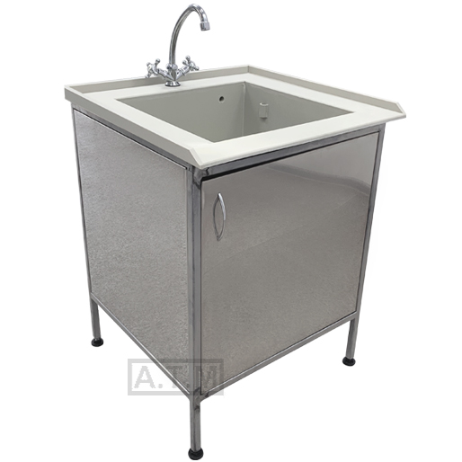 Столешница толщиной 10 мм выполнена из полипропилена серого цвета, по трем сторонам антипроливные бортики;