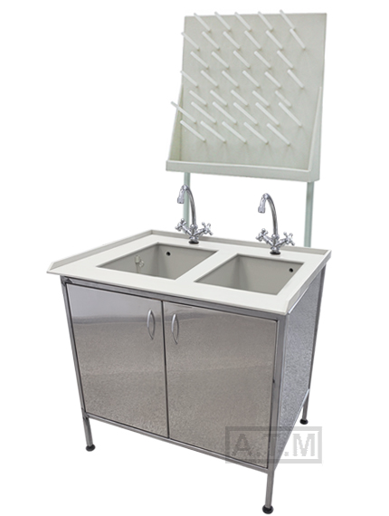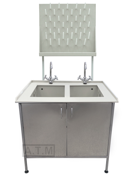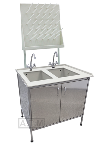 Мойка снабжена двумя створками,сушильным стеллажом, двумя смесителями с подводом для горячей и холодной воды, двумя заглушками с хромированной цепочкой для раковины.