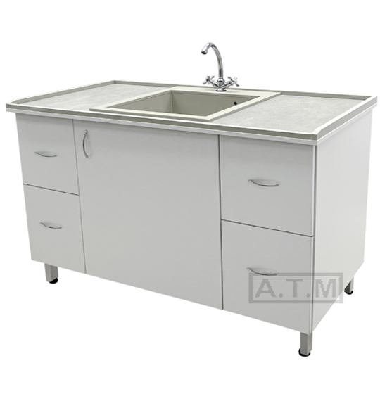 По четырем сторонам столешницы антипроливные полипропиленовые бортики серого цвета;