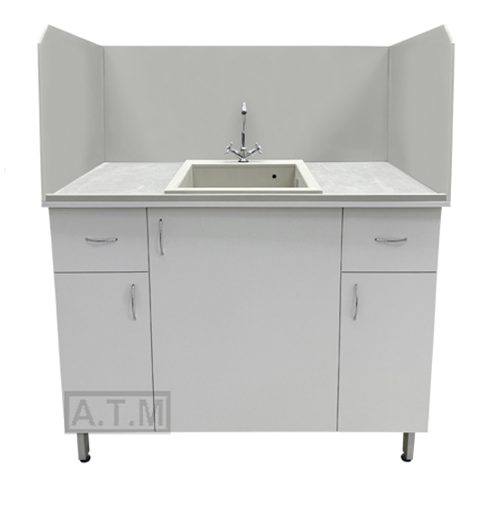 По четырем сторонам столешницы антипроливные полипропиленовые бортики серого цвета;