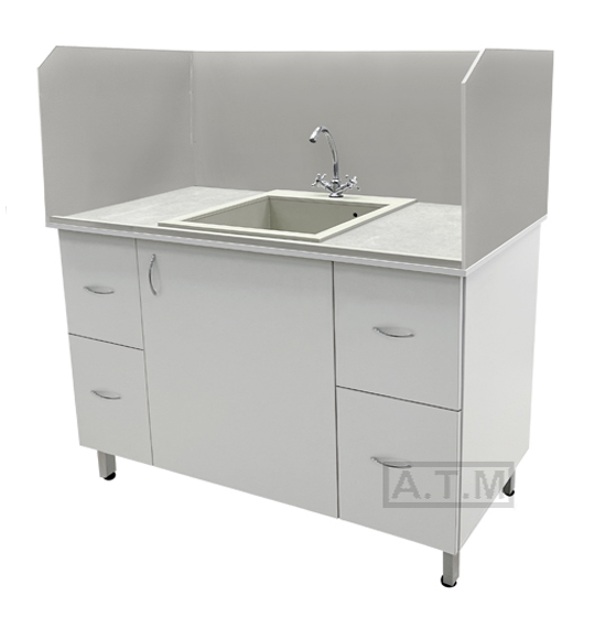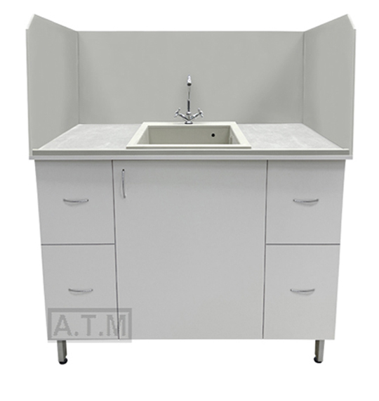 По четырем сторонам столешницы антипроливные полипропиленовые бортики серого цвета;