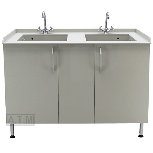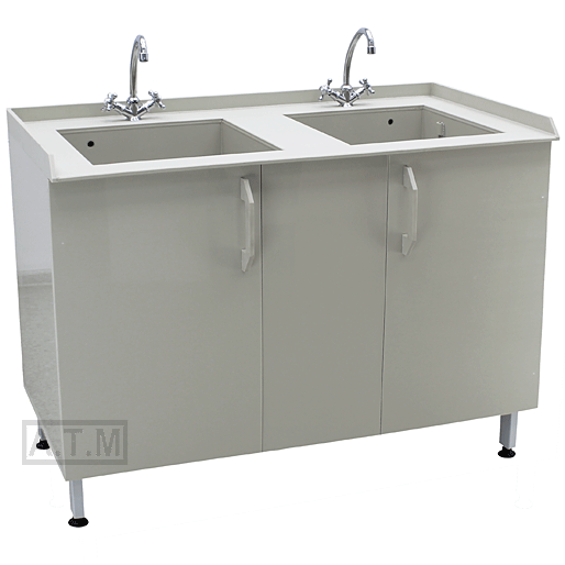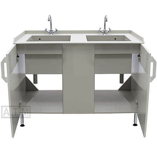Столешница толщиной 10 мм выполнена из полипропилена серого цвета, по трем сторонам антипроливные бортики;