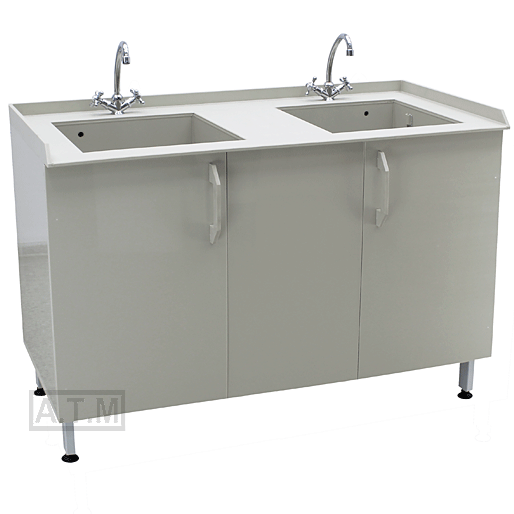 Столешница толщиной 10 мм выполнена из полипропилена серого цвета, по трем сторонам антипроливные бортики;