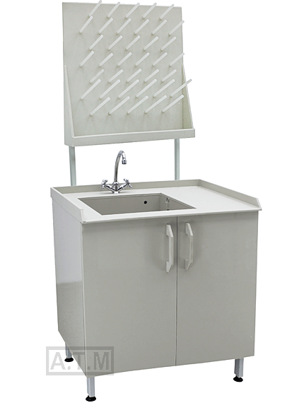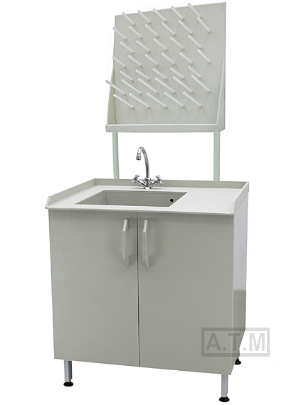Мойка снабжена двумя створками,смесителем с подводом для горячей и холодной воды.