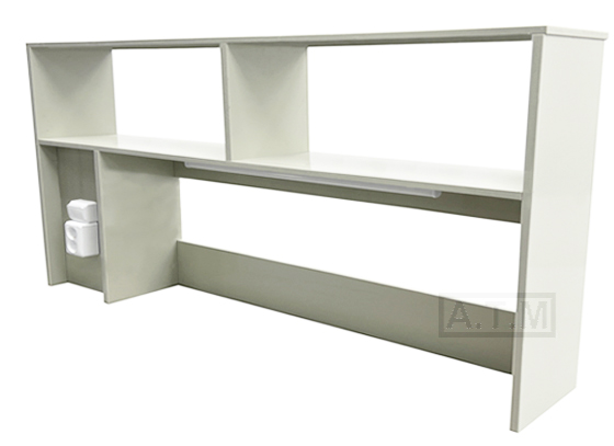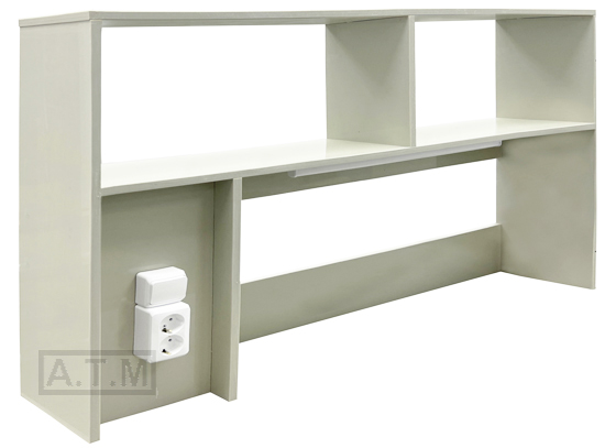 Надстройка имеет 2 полки, 2 розетки и светодиодный светильник.