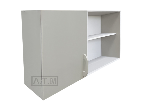 Слева шкаф снабжен створкой (за створкой полка), справа — полкой;