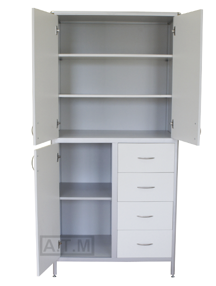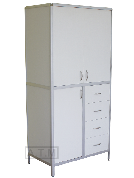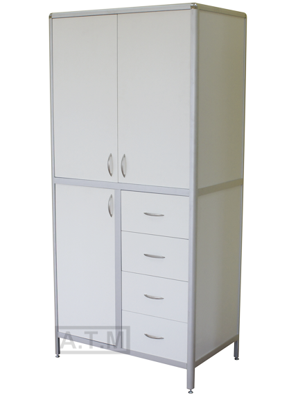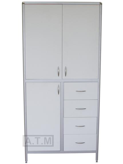 Шкаф снабжен 3 створками из ЛДСП 16 мм и 4 ящиками на роликовых направляющих;