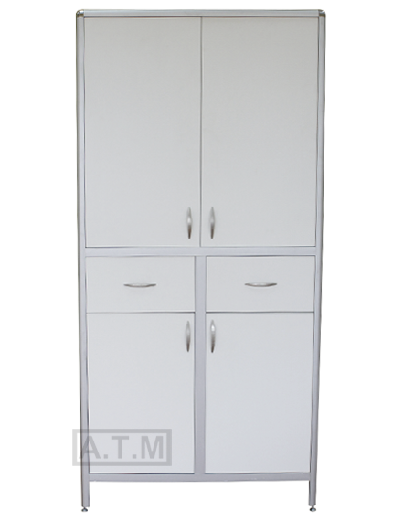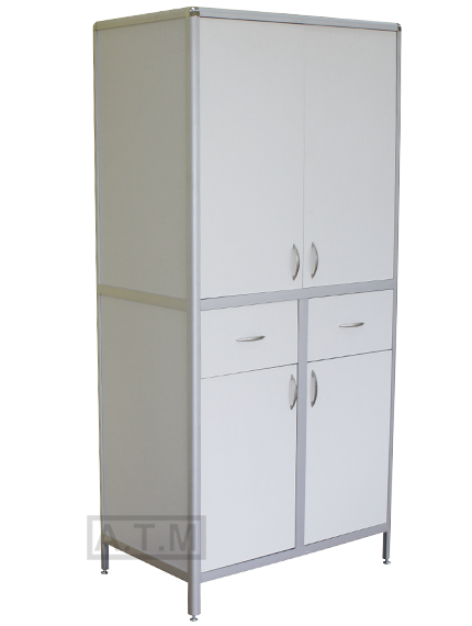 Шкаф снабжен 4 створками из ЛДСП 16 мм и 2 ящиками на роликовых направляющих;