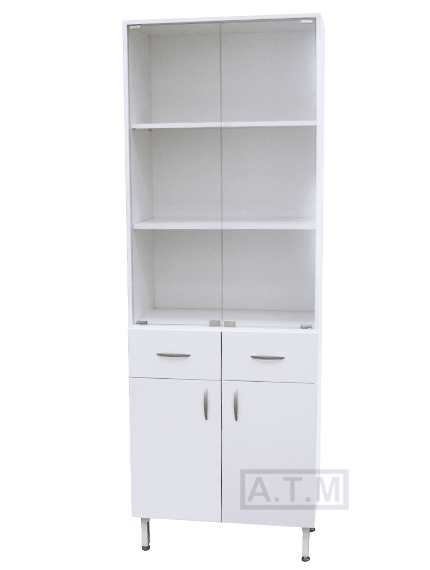 Верхняя часть изделия комплектуется 2-я полками и 2-я стеклянными створками;