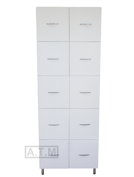 Имеет 10 выдвижных ящиков, на роликовых направляющих;