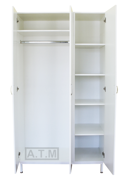Первое отделение шкафа снабжено полкой для головных уборов и штангой для вешалок;