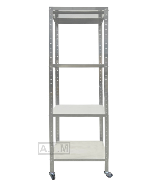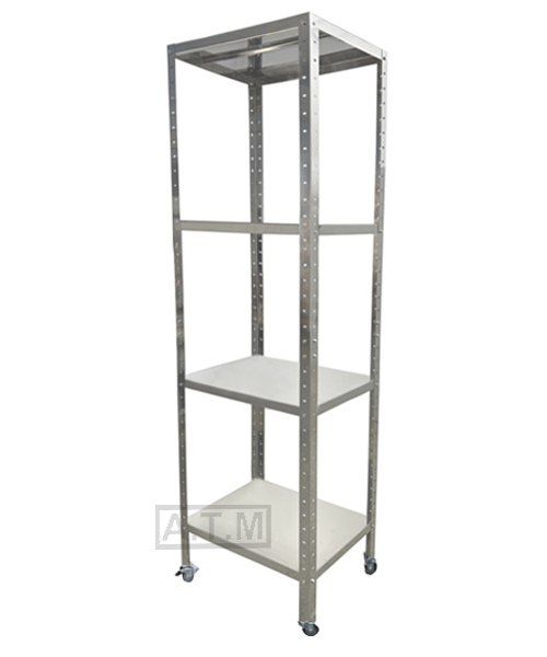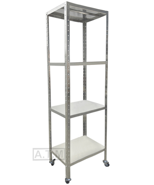 Отличие от усиленных стеллажей: стоевые из уголка, нержавеющая сталь марки AISI 304 толщиной 1 мм (без ребер усиления);