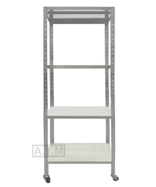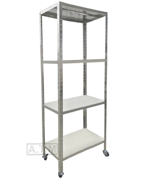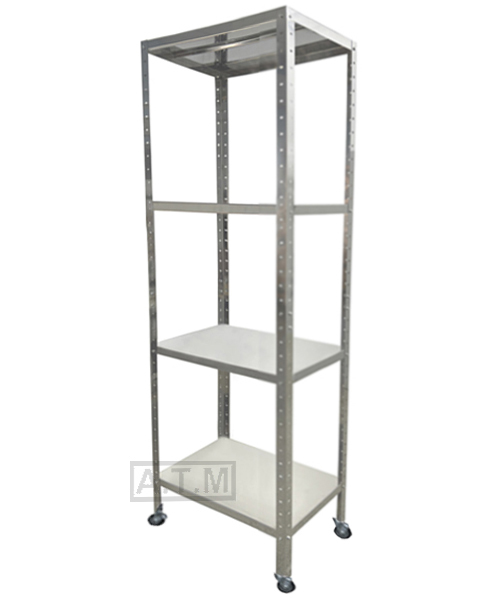 Отличие от усиленных стеллажей: стоевые из уголка, нержавеющая сталь марки AISI 304 толщиной 1 мм (без ребер усиления);
