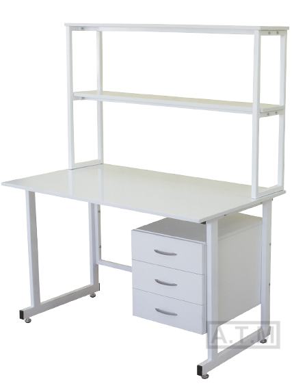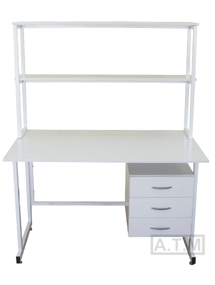 Стол имеет тумбу с 3 ящиками на роликовых направляющих;