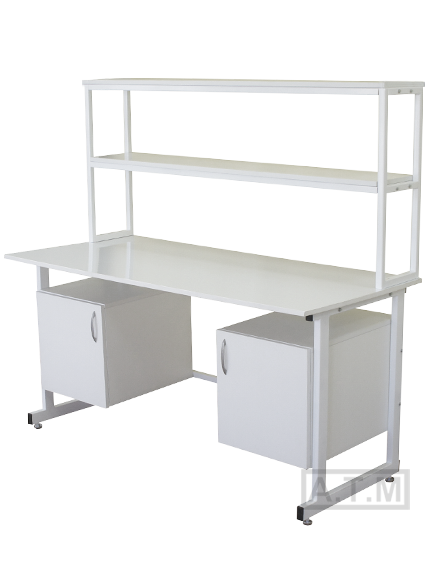 Стол снабжен надстройкой с 2 полками;