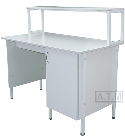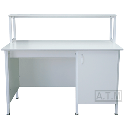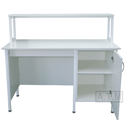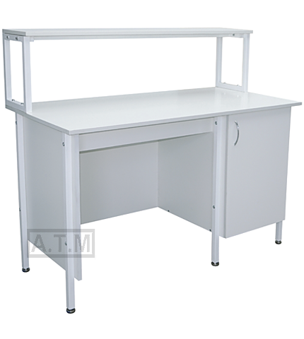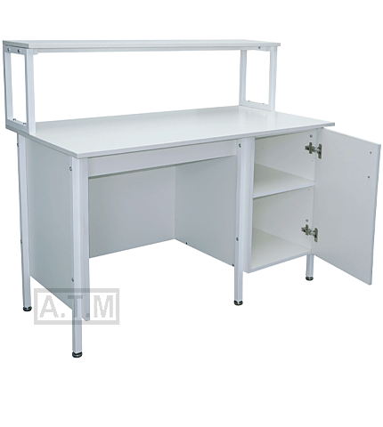 Стол оснащен тумбой с распашной дверцей и полкой;