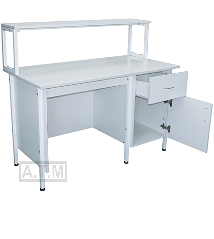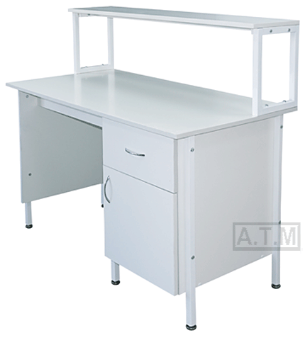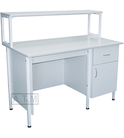 Стол снабжен надстройкой с одной полкой;