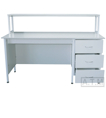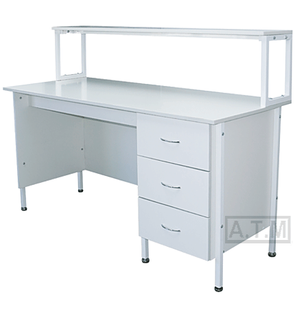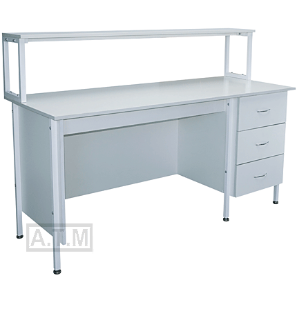 Стол снабжен надстройкой с одной полкой;