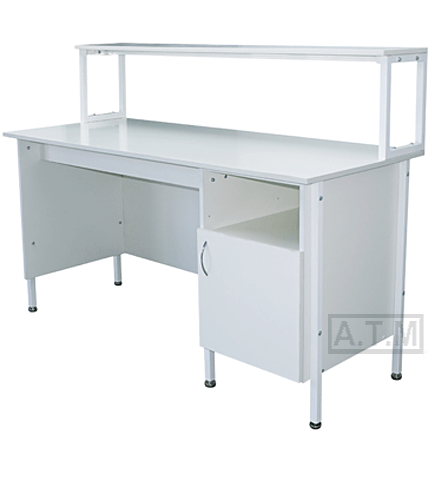 Стол снабжен надстройкой с одной полкой;