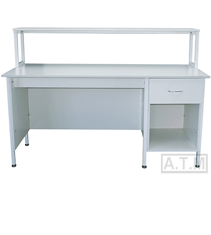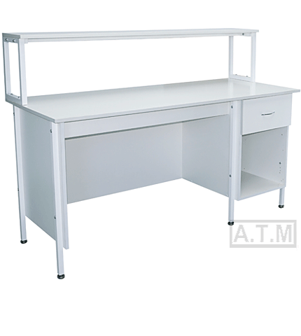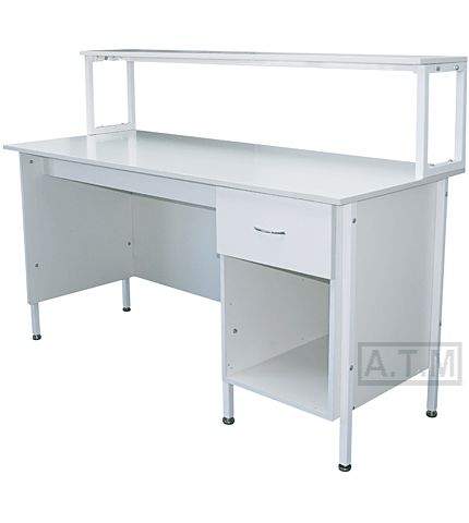 Стол снабжен надстройкой с одной полкой;