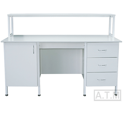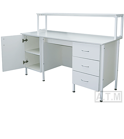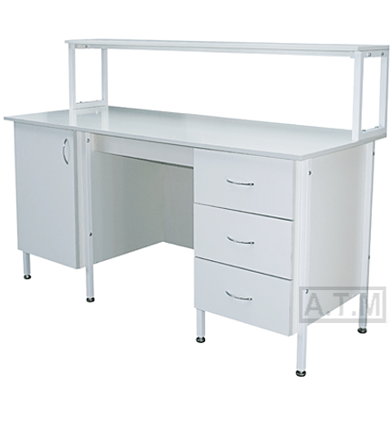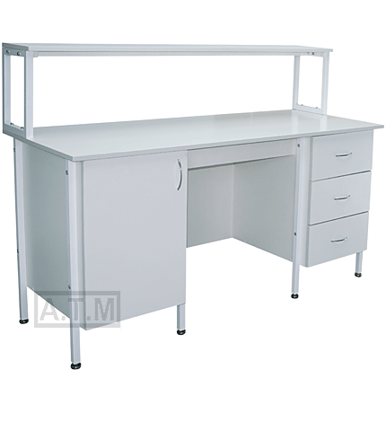 Стол снабжен надстройкой с одной полкой;