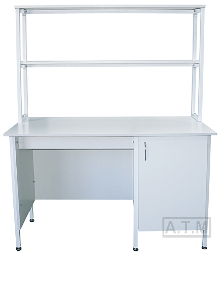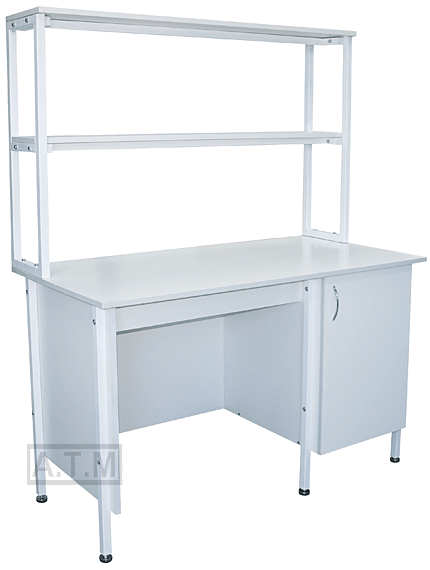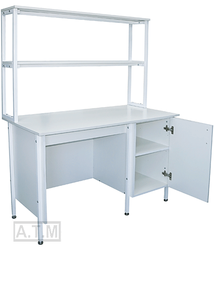 Стол оснащен тумбой с распашной дверцей и полкой;