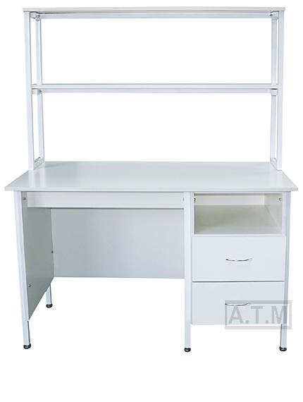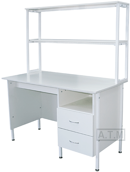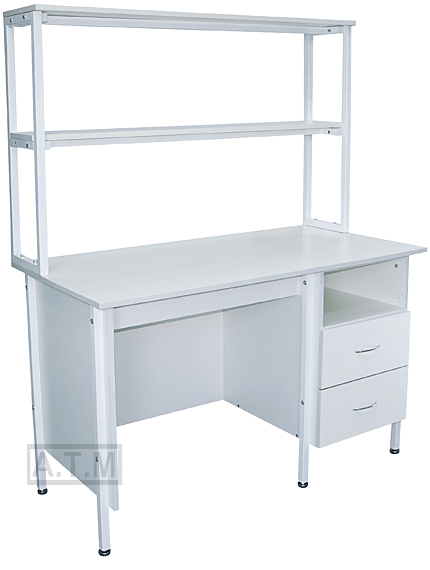 Стол снабжен надстройкой с двумя полками;