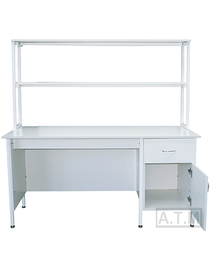 Стол оснащен тумбой с ящиком на роликовых направляющих и створкой;