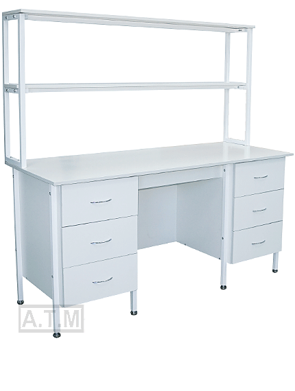 Столешница облицована химостойким  пластиком с 2-х сторон 16 мм (типа "Лабгрейд");