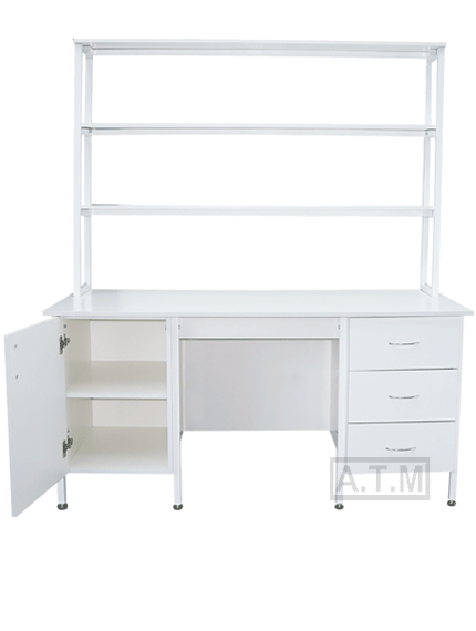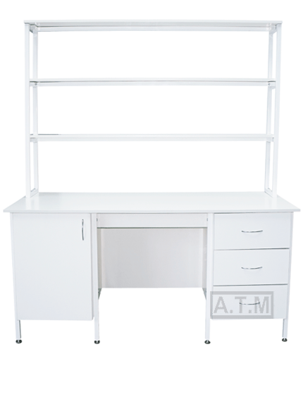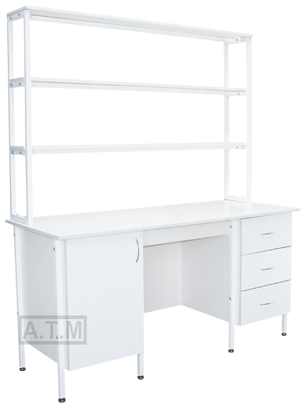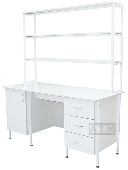 Стол снабжен надстройкой с тремя полками;