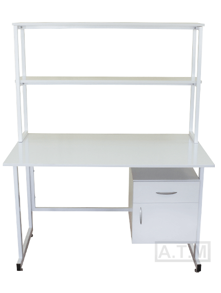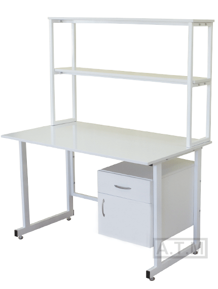 Стол снабжен надстройкой с 2 полками, 2 розетками, автоматом отключения питания на 16А и светодиодным светильником;