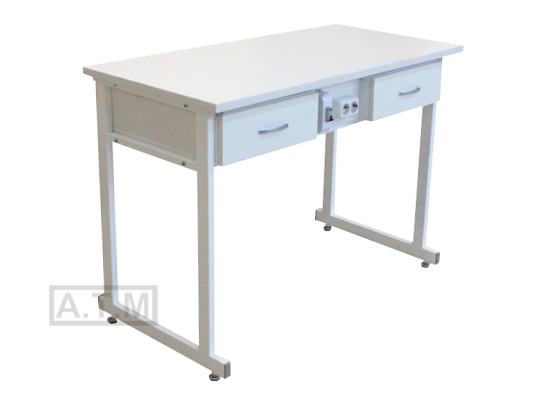 Стол оснащен тумбой с 2 ящиками на роликовых направляющих;