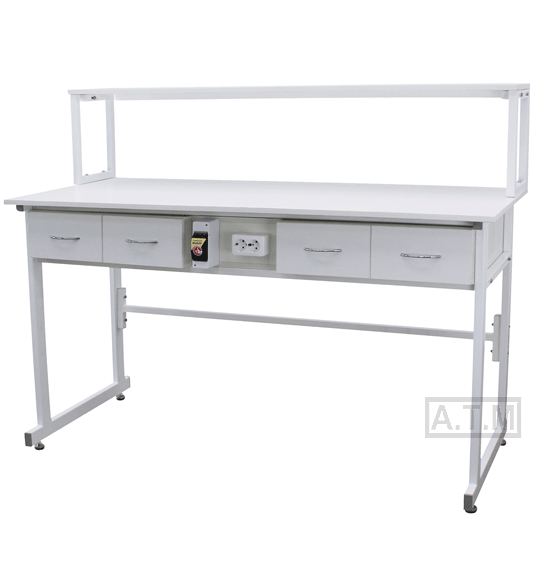 Стол оснащен тумбой с 4 ящиками на роликовых направляющих;