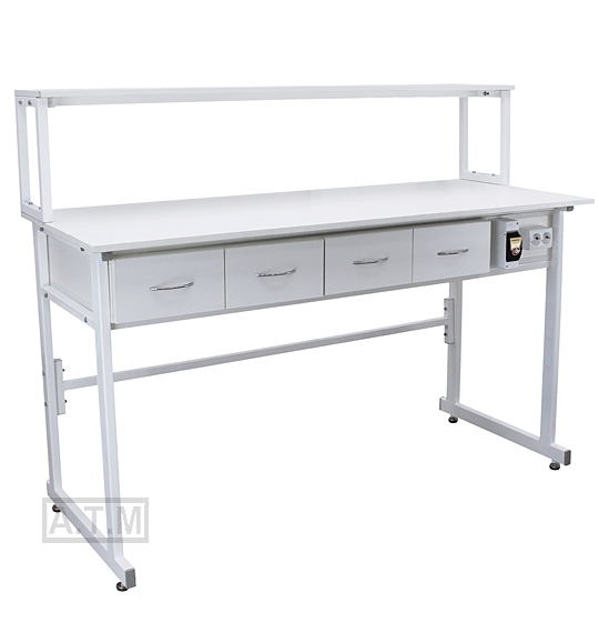 Стол оснащен тумбой с 4 ящиками на роликовых направляющих;