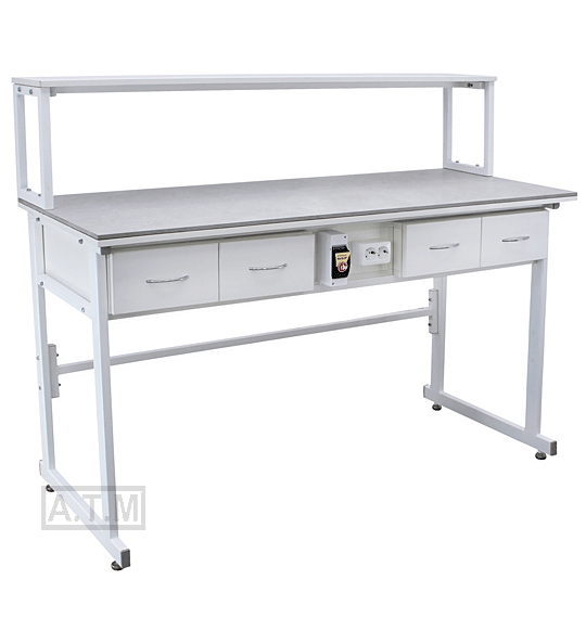Стол снабжен надстройкой с одной полкой;