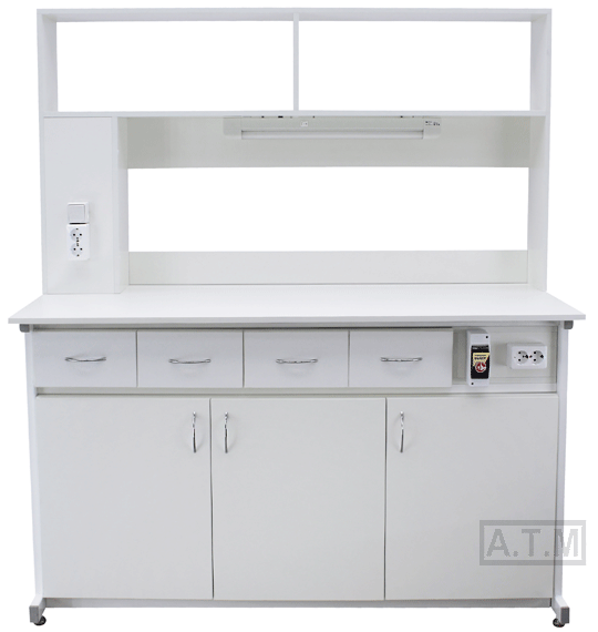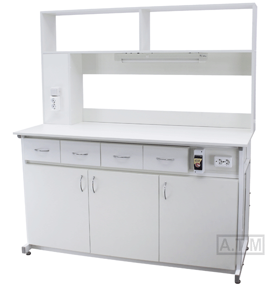 Столешница облицована химостойким пластиком с 2-х сторон 16 мм (типа Лабгрейд);
