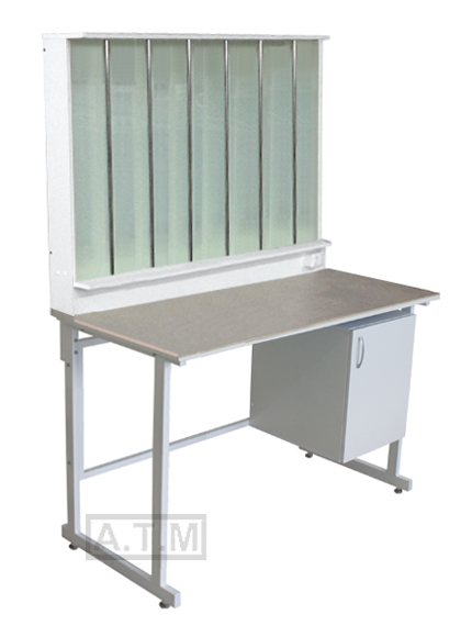 Стол снабжен розеткой, выключателем и тумбой со створкой;