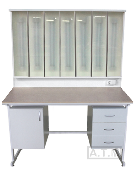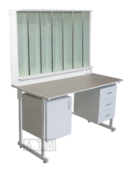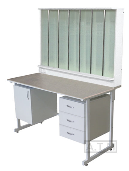 Стол снабжен розеткой, выключателем и 2-я тумбами;